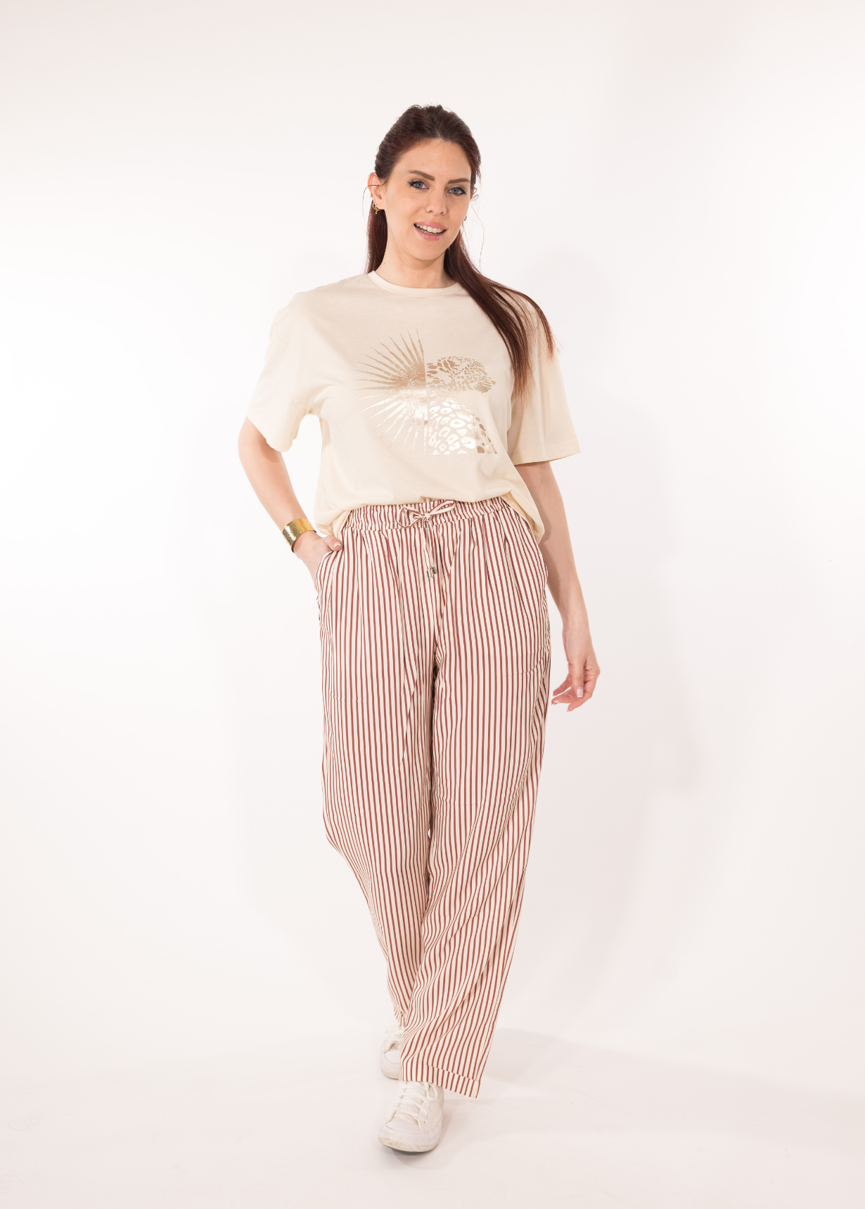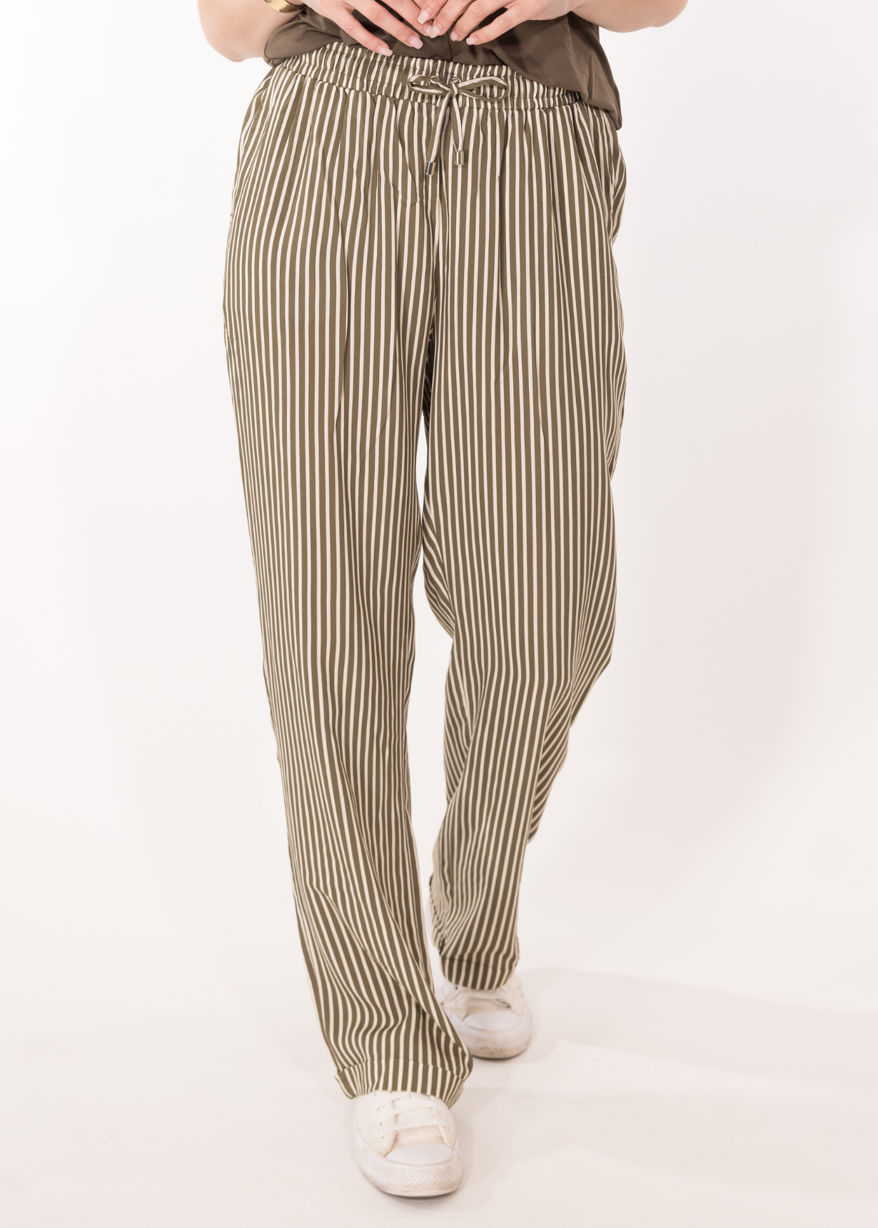 PANTALON CAROTTE AMBRE KAKI STRIPES