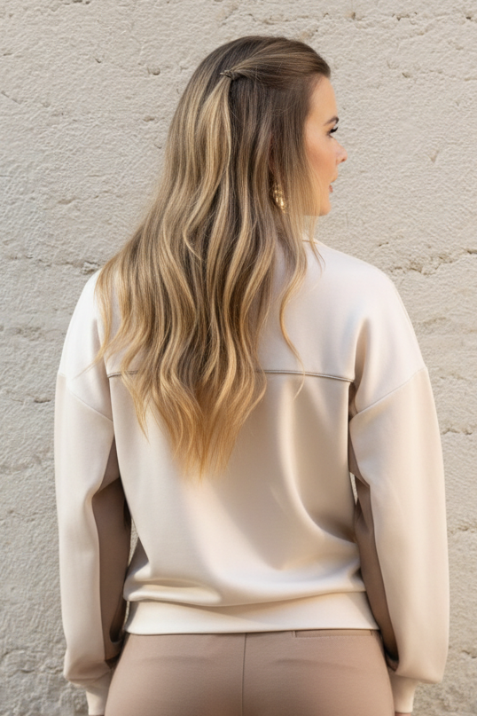 SWEAT COL ROND LOLA CHOCOLAT - CRÈME